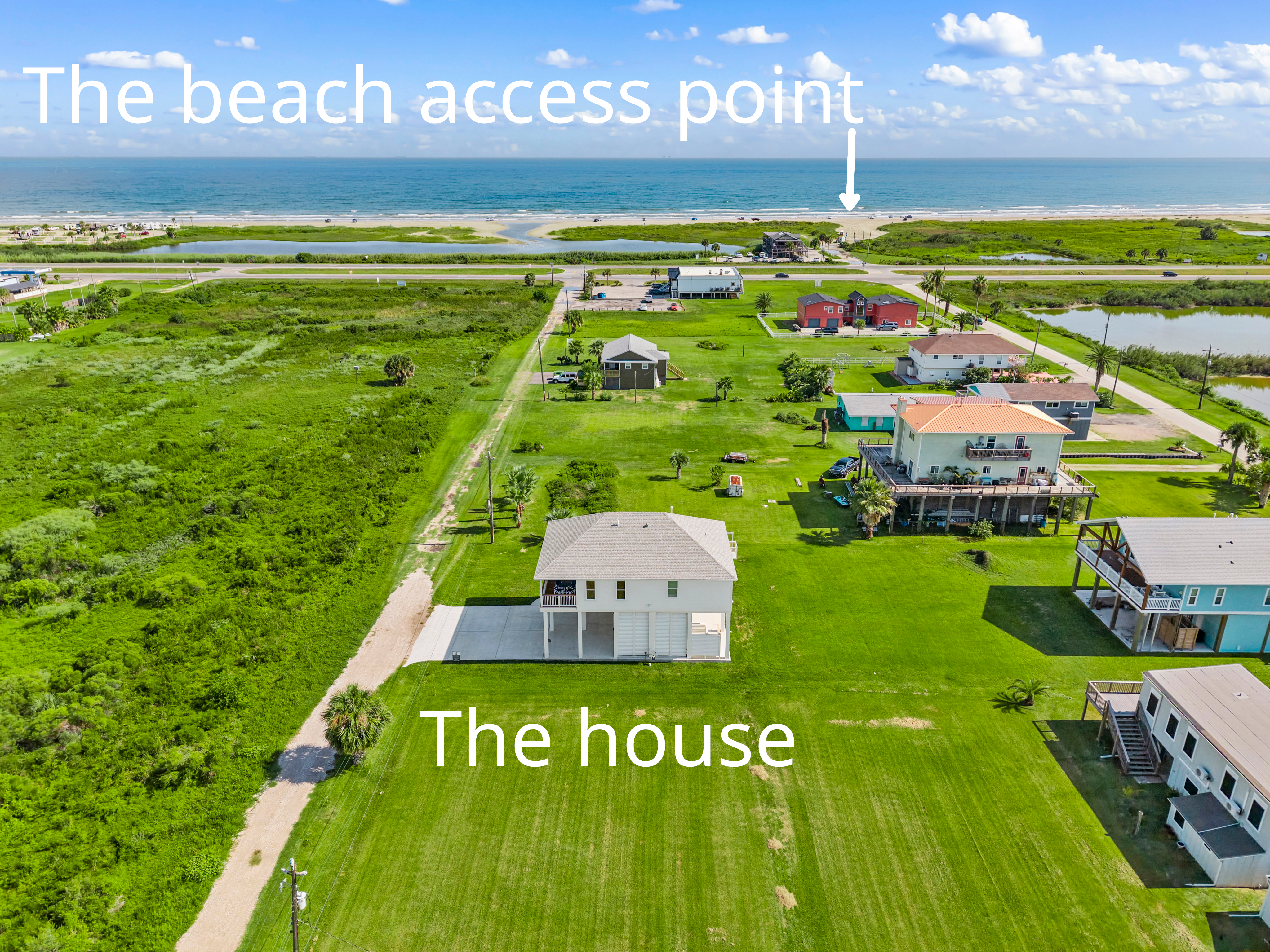 It is an easy walk and the beach is free to pedestrians. That being said, you must cross the four lane San Luis Pass Road. This is easy at any time of the day. Be patient and large breaks in traffic will allow an easy crossing. Children should be accompanied. The speed limit is 50 mph but in Texas that's just a suggestion.