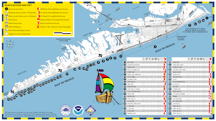 Driving is limited in high occupancy areas. You can't drive by Pleasure Pier or the seawall. Out west, there are two types of beaches that allow driving. One is a pocket park. They are normally about a half mile long. Most are free. Some charge.